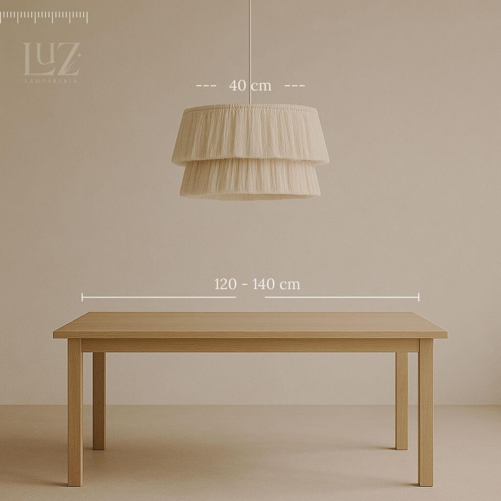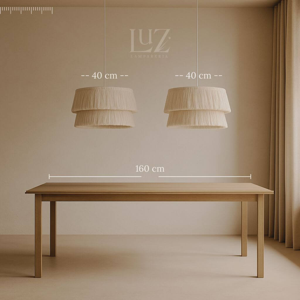 👉 El diámetro de la lámpara debería representar entre la mitad y dos tercios del ancho de la mesa.